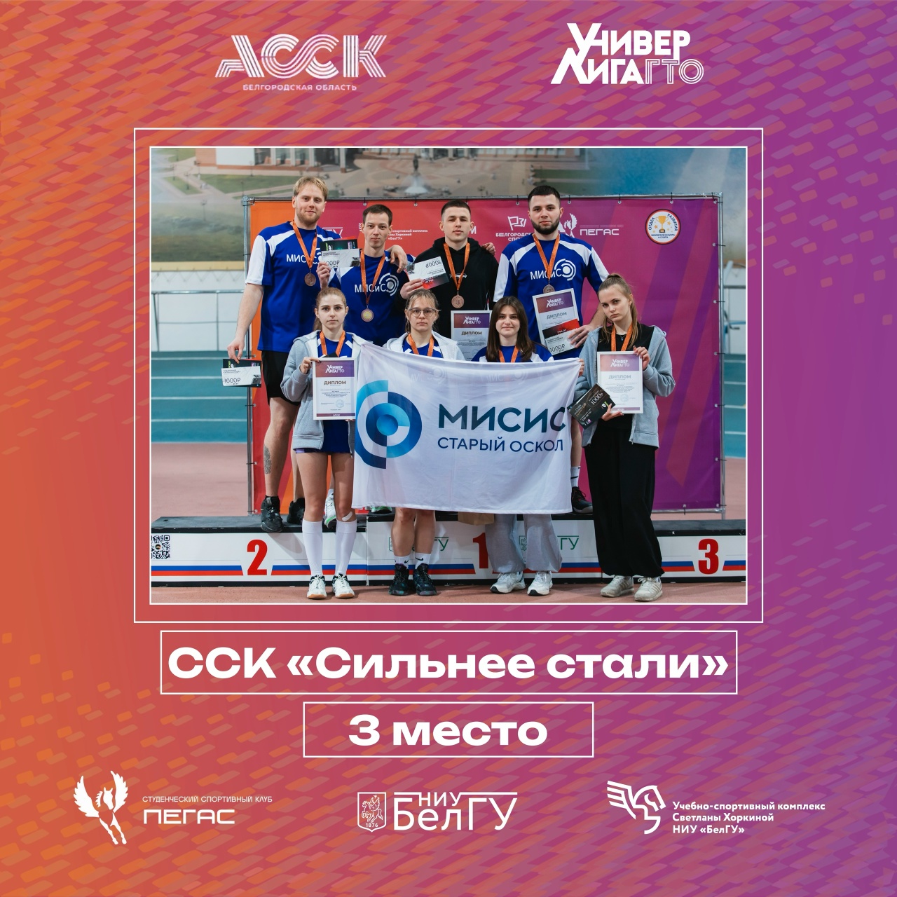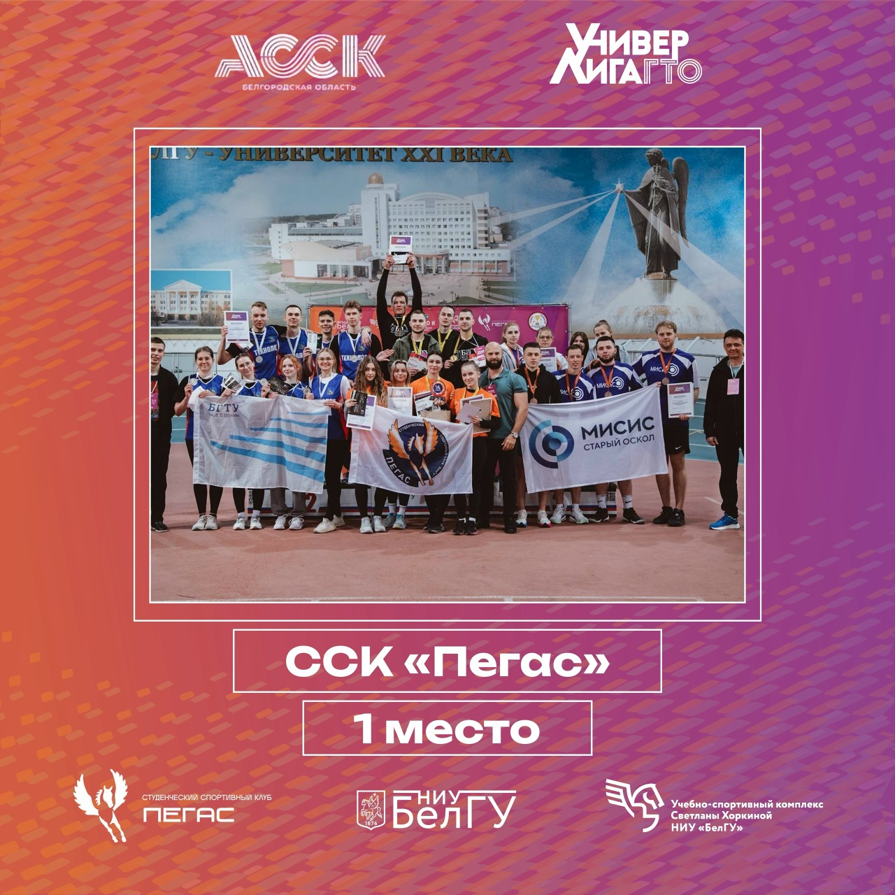 1 место — ССК «Пегас» НИУ «БелГУ» – 500 баллов;